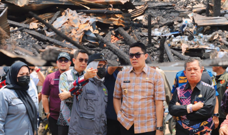 Ia berjalan menyusuri lokasi kebakaran, menyapa satu per satu pedagang, dan mendengar langsung keluhan mereka.